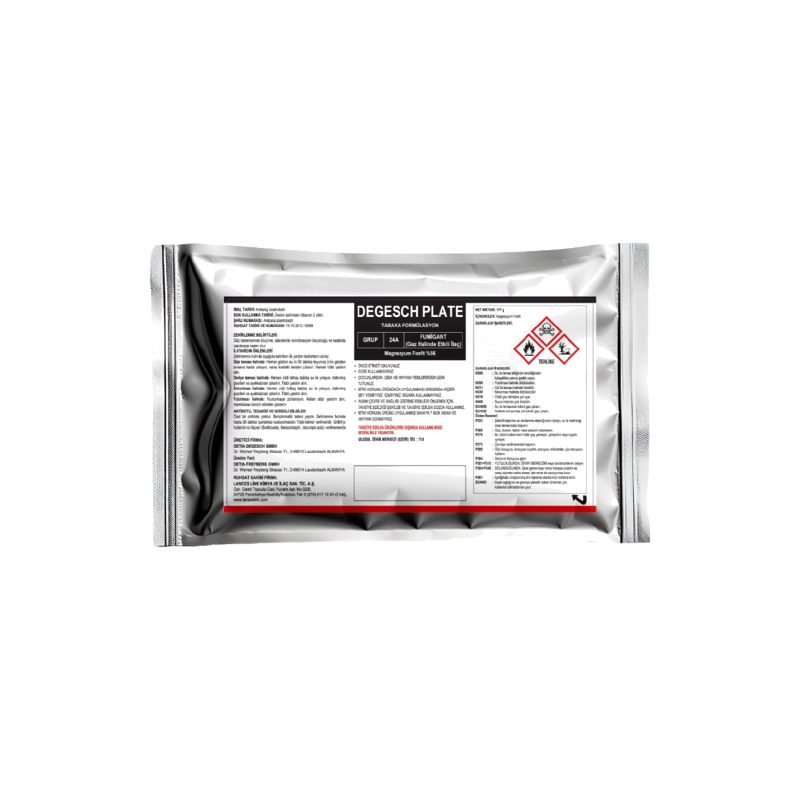 İlaçlama çalışmalarımızda dünya genelinde yüksek güvenlik ve etkinlik standartlarıyla tanınan Detia Degesch Group’un fumigant ürünlerini kullanmaktayız. 200 yılı aşkın geçmişe sahip olan Detia, Almanya merkezli bir kimya grubudur ve özellikle depolanmış ürün zararlılarıyla mücadelede geliştirdiği fosfin bazlı çözümlerle global ölçekte kabul görmektedir.